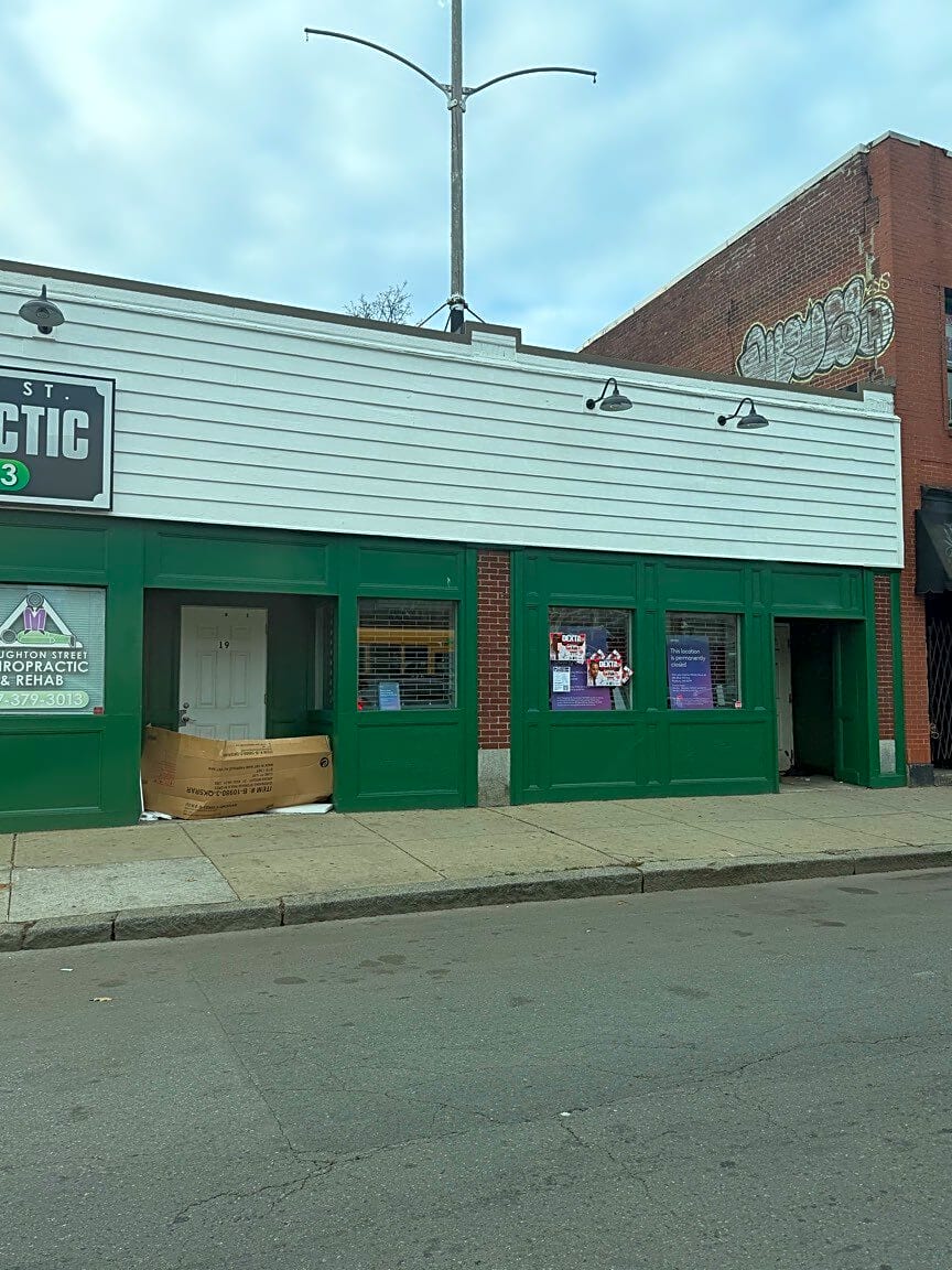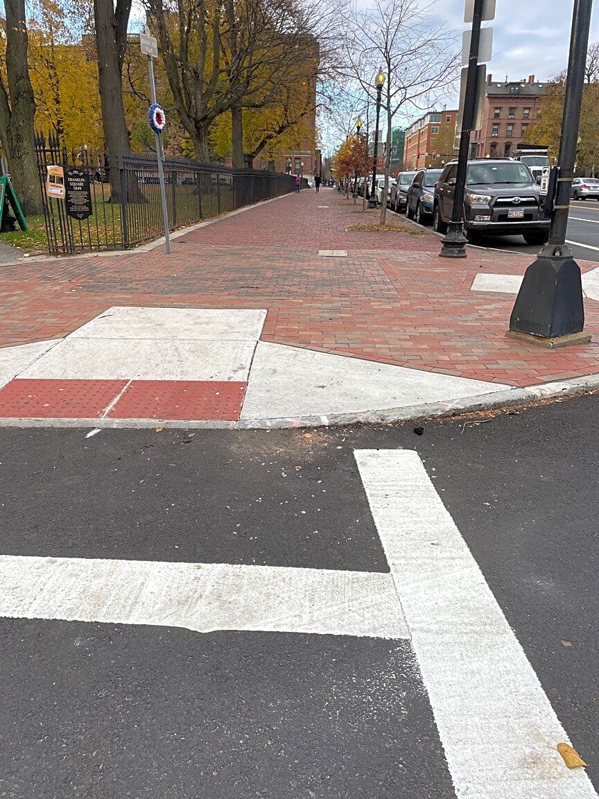 Intersection Of W Brookline St And E Brookline St And Washington St, Roxbury, MaBroken glass on the crosswalk crossing E Brookline St at Washington St