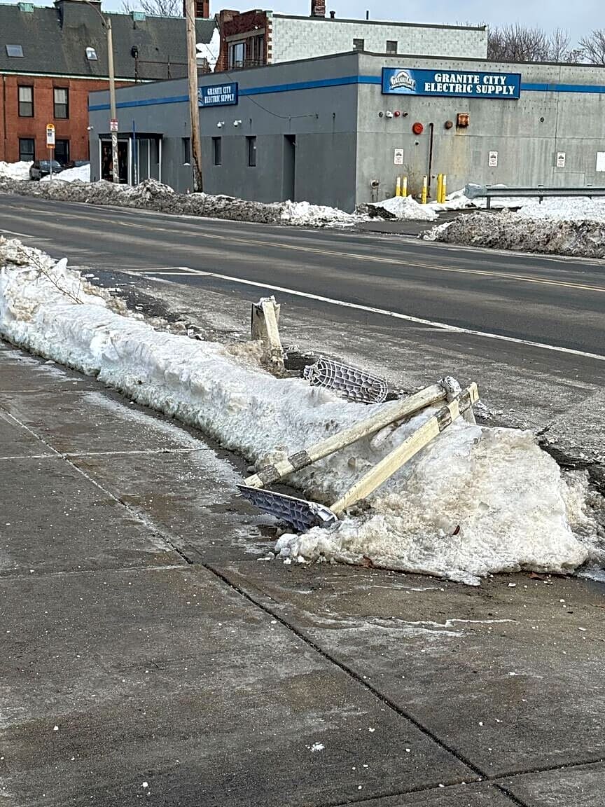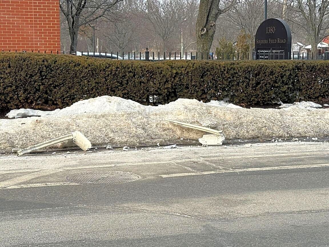 Intersection Of Leo M Birmingham Pkwy And Western Ave And Soldiers Field Rd, Brighton, MaConstituent reached out to our office about the broken bike land bollards on Western Ave between Everett St and Leo Birmingham Parkway on both sides have been knocked down. The poles are in the snow banks and shards are everywhere. Many residents have noted that the shards and debris is extremely hazardous for bike riders, flat tires and pedestrians (particularly in front of Notch Brewery and the Jackson Mann Community Center). Requesting that this be made safe again and so that PW can properly clear the bike lanes! Thank you!