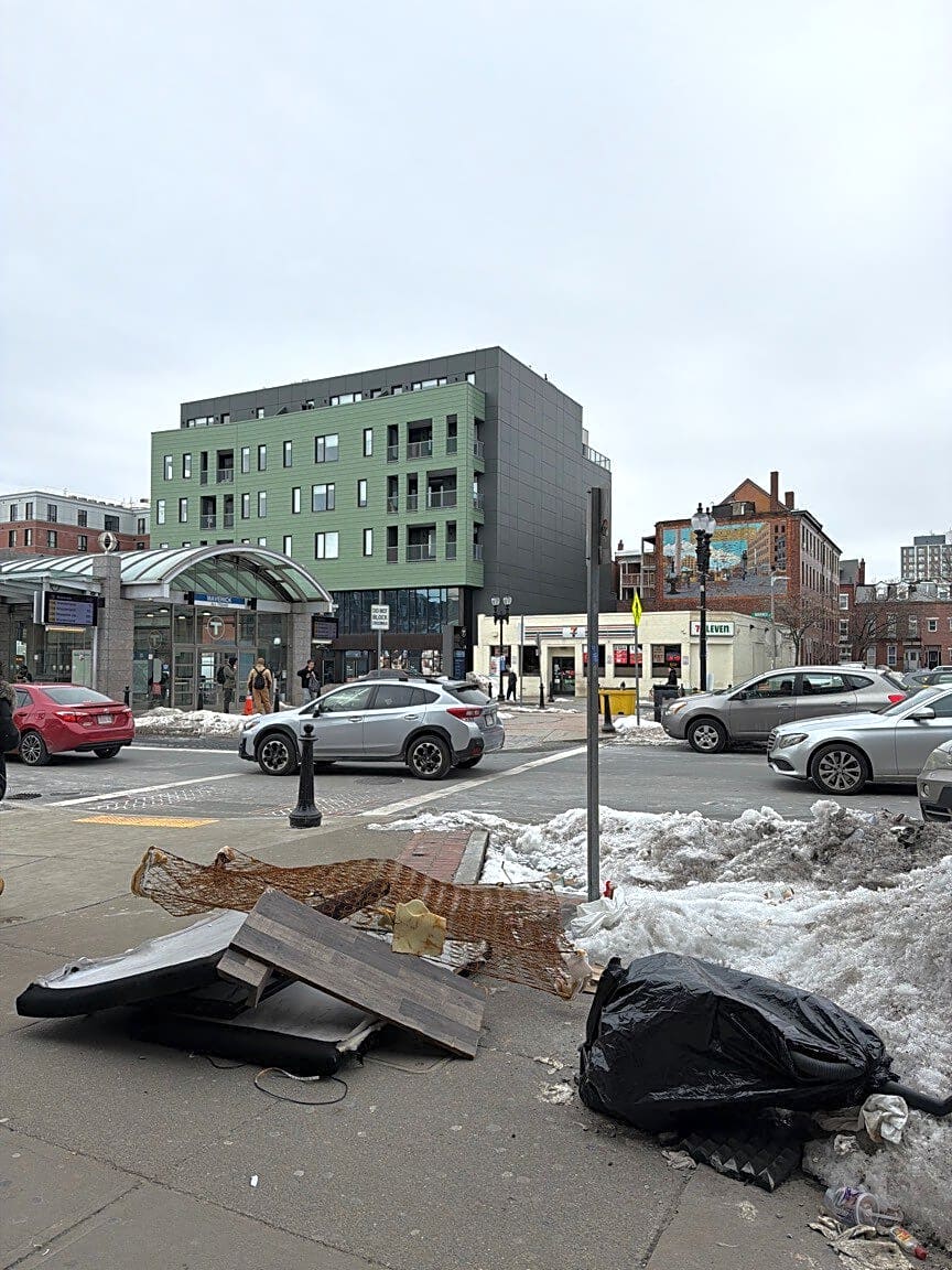 33 Maverick Sq, East Boston, Ma, 02128Junk trash in the side walk for weeks now.