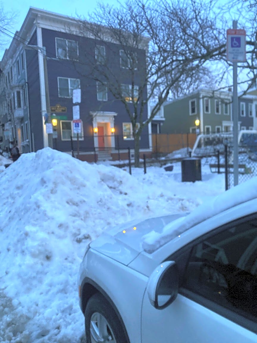 Intersection Of Crystal Pl And Mead St, Charlestown, MaI appreciate the work DPW and snow plowers have done but this is unacceptable.. can we please remove this snow bank …this handicapped spot is where my wife parks when she has to take her 90 year old mother out.. thank you