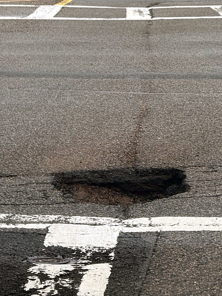 Intersection Of Charles St S And Boylston St And Charles St, Boston, MaMassive pot hole on the corner of Boylston St and Charles St by the Boston Public Gardens.
