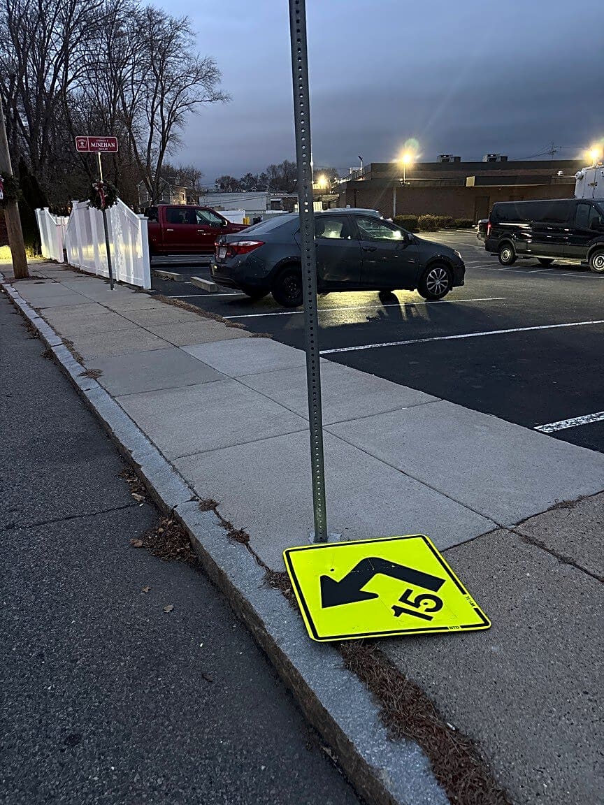 Newland St & Worcester StRandom tree stump on side walk at corner of Worcester Street and Newland Street