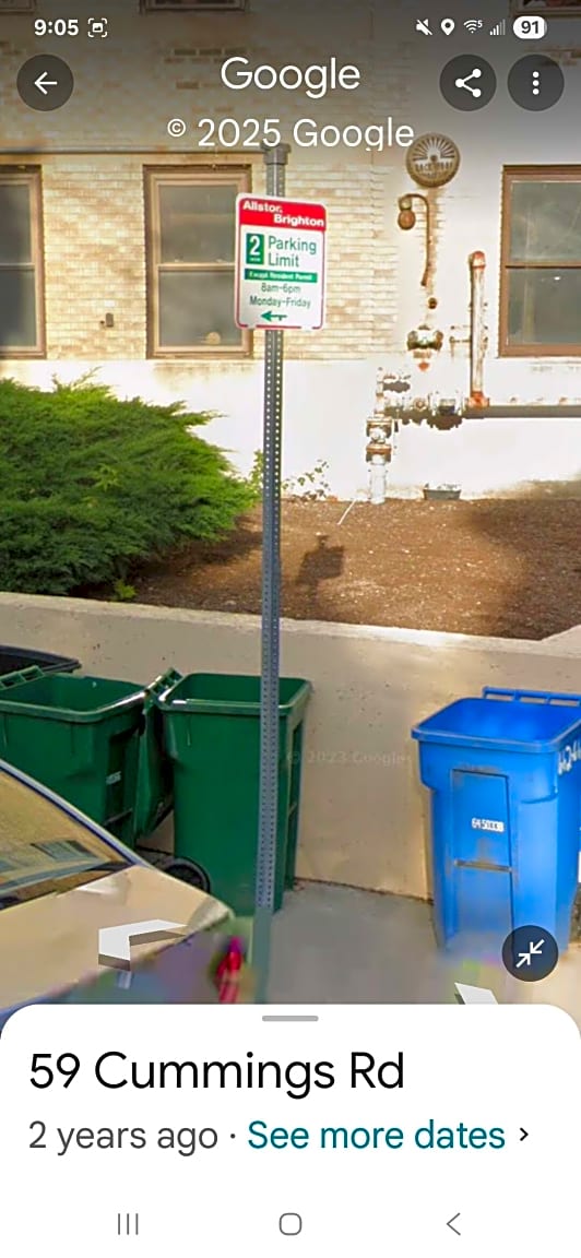 59 Cummings Rd, Brighton, Ma, 02135Visitor Parking sign was knocked down and needs to be replaced. Picture shows where sign used to be located at 59 Cummings Road in Brighton.