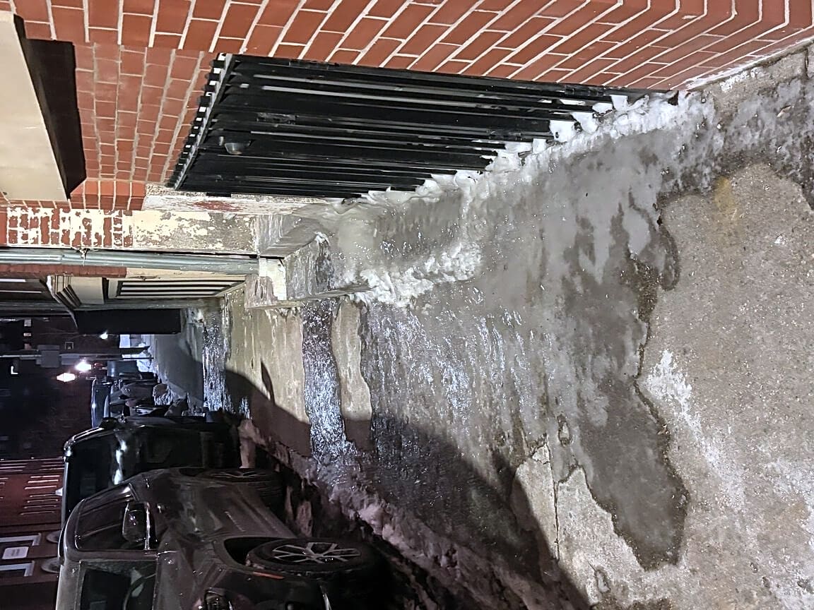6 Moon St, Boston, Ma, 02113Untreated ice from downspouts. Been like this for years.