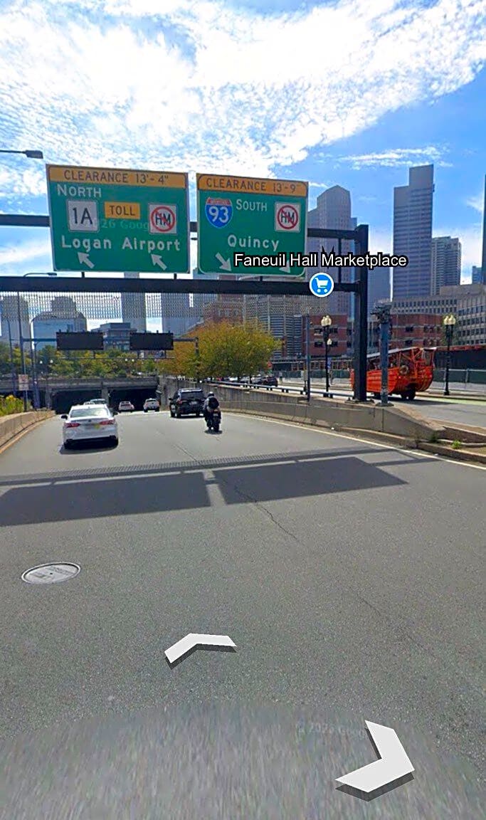 Intersection Of Endicott St And Cross St, Boston, MaN Washington st to 93 south before tunnel with the big Pothole please fix it thankyou
