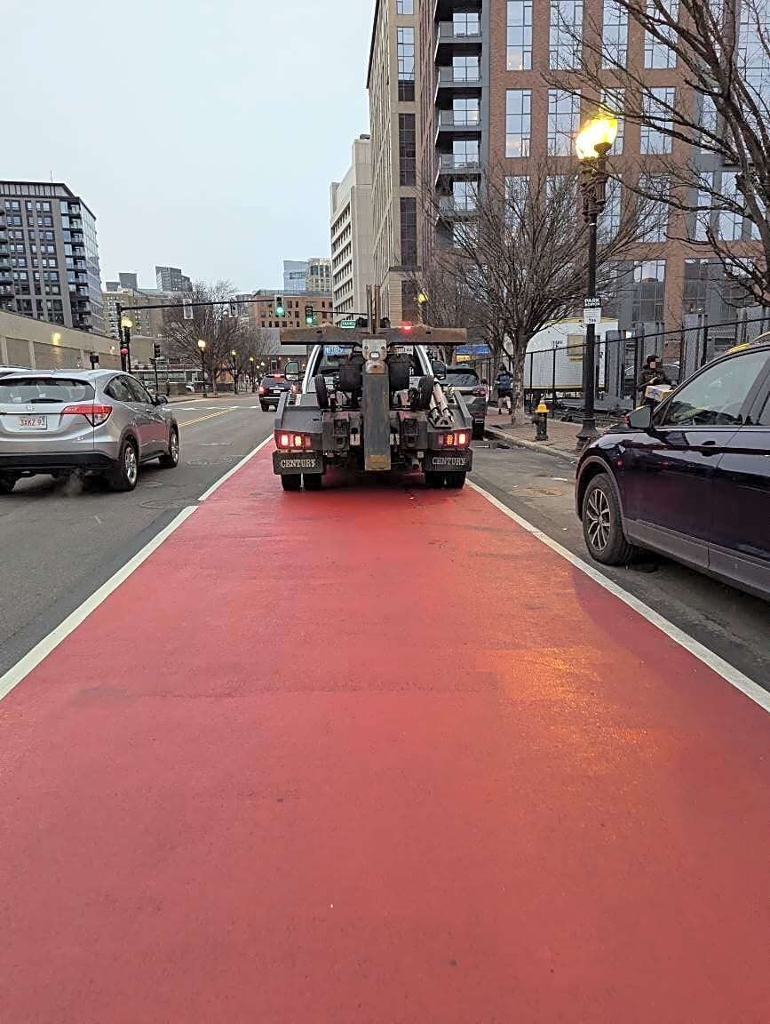 Intersection Of Waterford St And Washington St, Roxbury, MaTow truck driver blocking bus lane