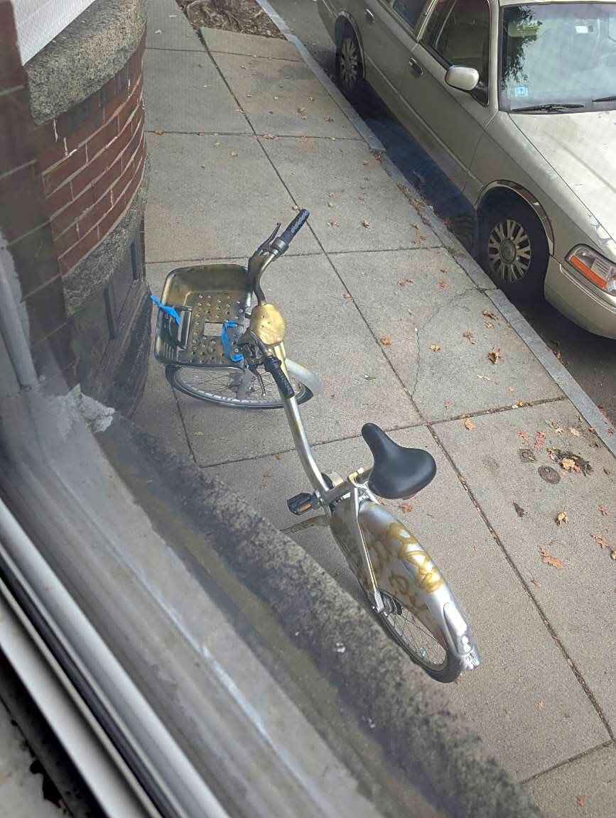 50 Saxton St, Dorchester, Ma, 02125Abandoned vandalized blue bike