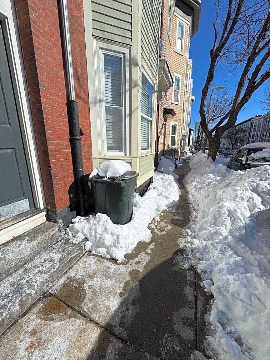 86 88 Roseclair St, Dorchester, Ma, 02125I rent at 86 Roseclair St in Dorchester. The back alley street to access the driveway parking spot of my apartment is not cleared of snow fully or properly for me to turn into my driveway because it is too tight with all the snow banks blocking. It’s a struggle to accommodate and fit the three cars of my apartment that currently use the private street to park behind this apartment, but it is also a street that is shared among two other buildings that also have vehicles. The landlord did not send maintenance to clear it even though it should be their responsibility to safely allow access to the parking spot I was promised in the lease. I was forced to shovel a decent amount on my own to allow my car to get out of the driveway for work.