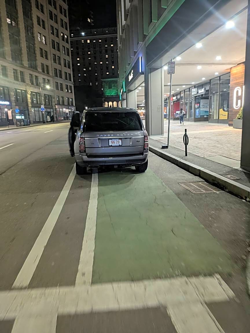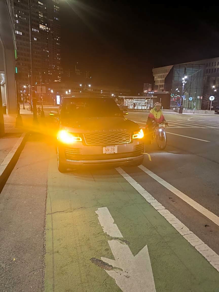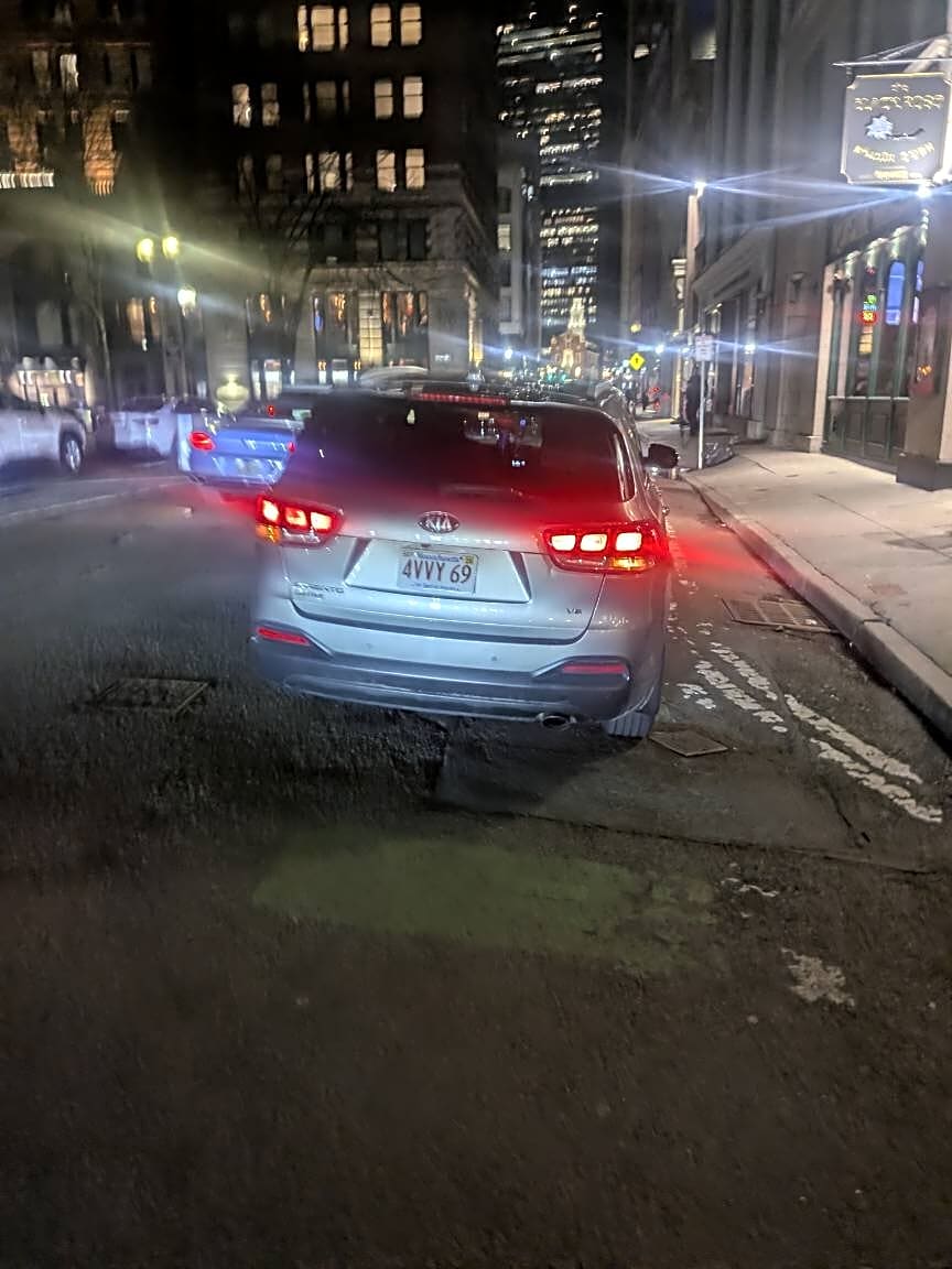 Intersection Of State St And Commercial St, Boston, MaParked in bike lane.