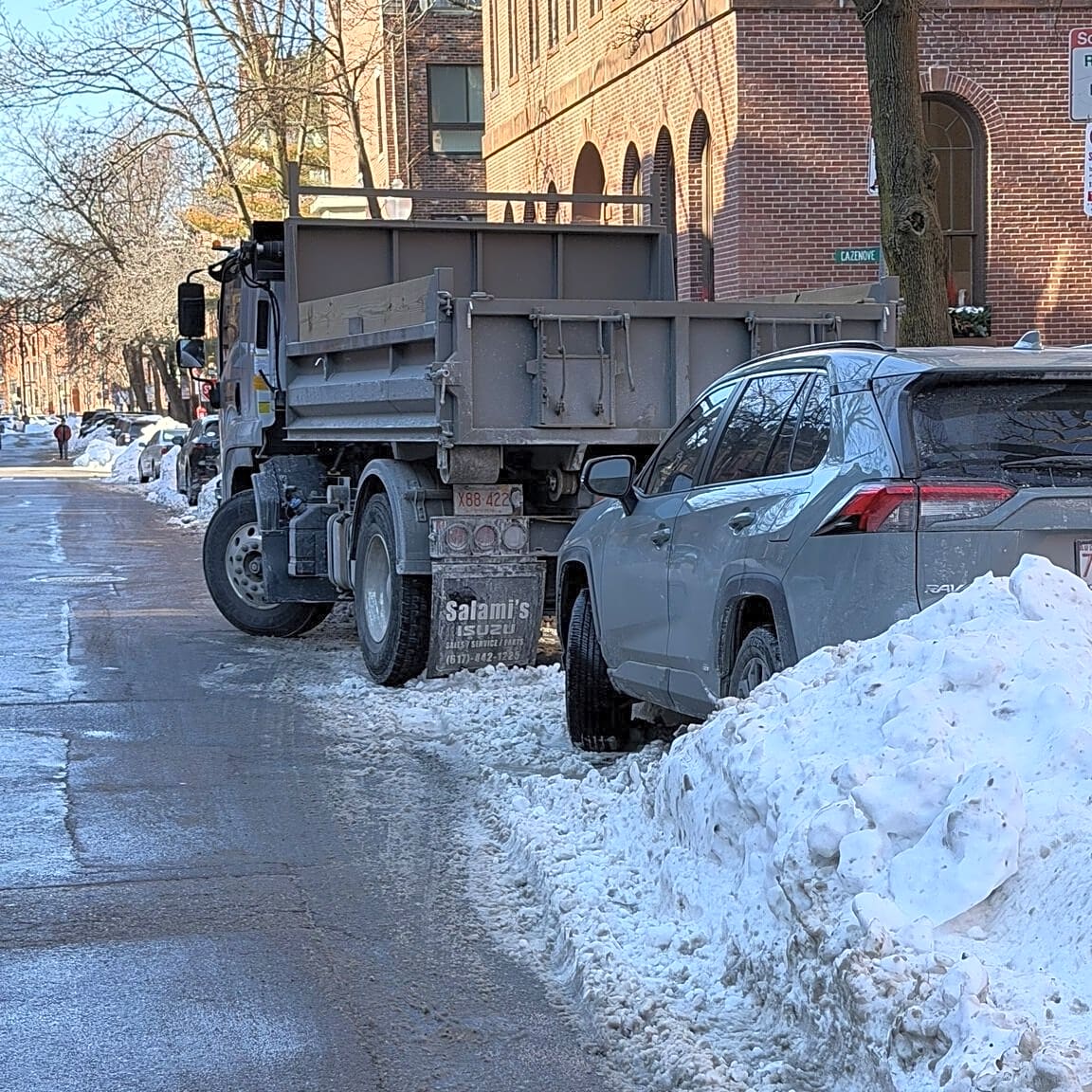 Kingston Street is 100% obstructed by illegally parked trucks. Please send traffic control to ticket and tow these vehicle vehicles. It’s unacceptable.