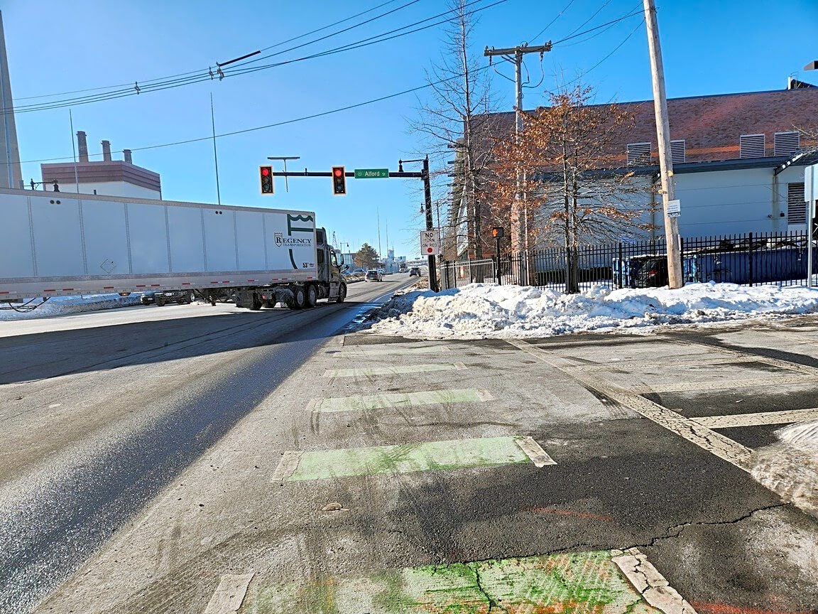 Intersection Of Dexter St And Alford St, Charlestown, MaSidewalk at crosswalk is not shoveled at the intersection of Alford St (Charlestown) and Broadway (Everett) near Encore. This issue is the corner alongside the Boston Water Commission property.
