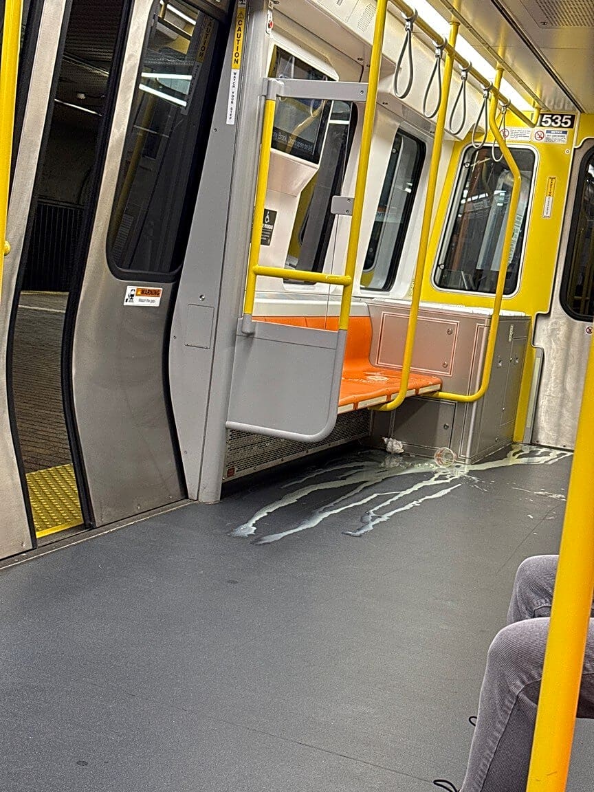 Intersection Of Oakdale Ter And Oakdale St, Jamaica Plain, MaSpilled drink on orange line car 1535
