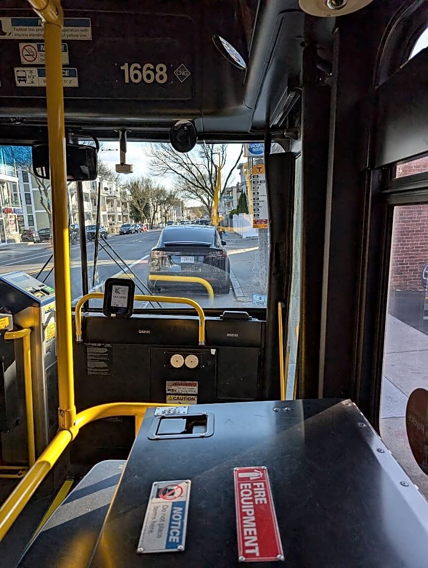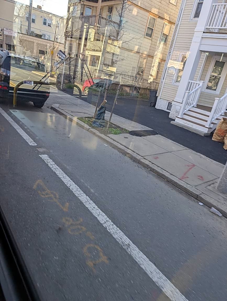 Intersection Of Mosgrove Ave And Washington St And Whipple Ave, Roslindale, MaCars parked in bus lane