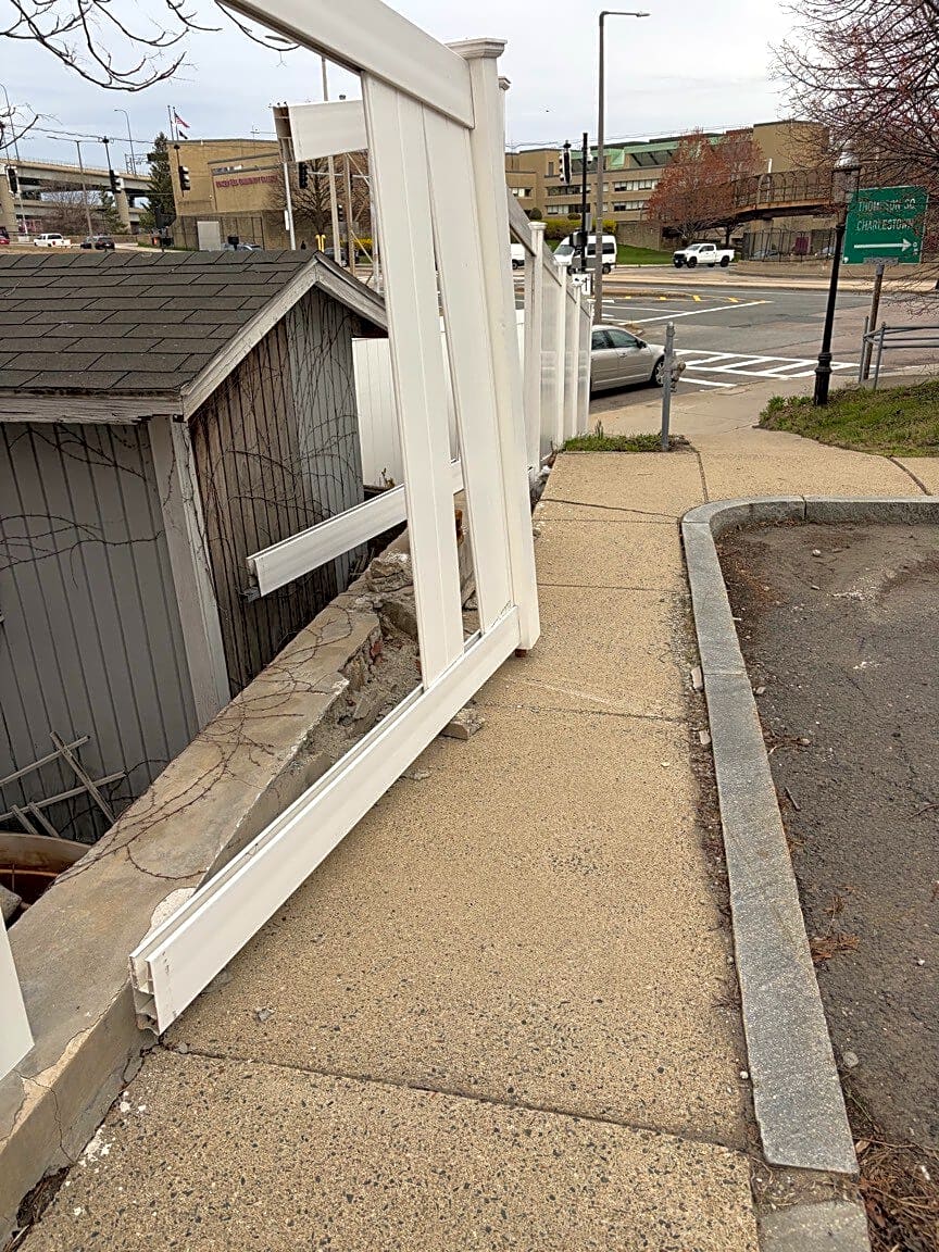 90 Washington St, Charlestown, Ma, 02129Fence and debris on sidewalk