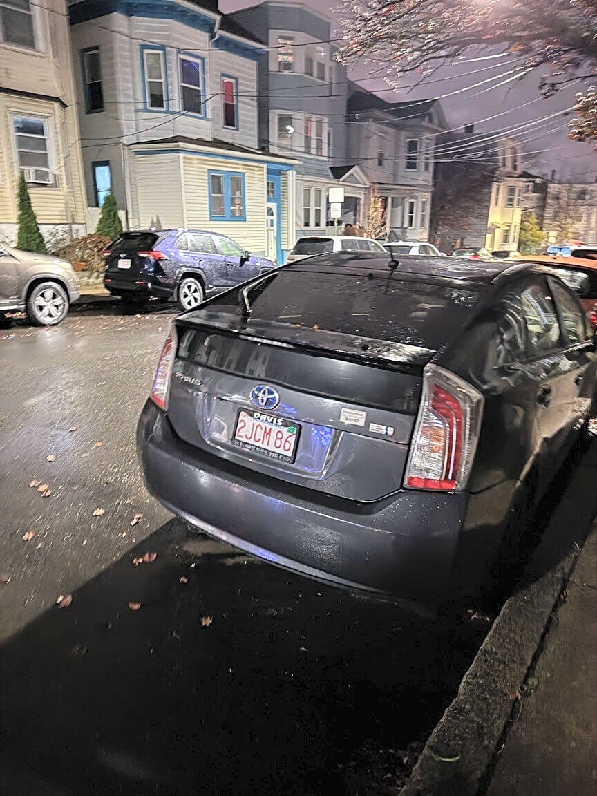 155 Endicott St, Boston, Ma, 02113This car is parked in a no parking spot, parked on the cross walk, and cars can not make the turn. This spot needs to have poles blocking off these corners it is so dangerous