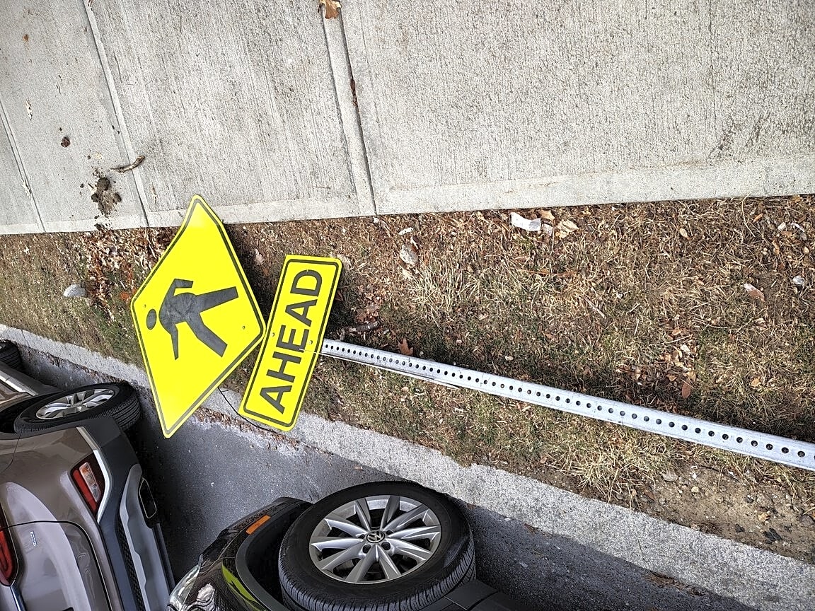 40 Wallingford Rd, Brighton, Ma, 02135Cross walk ahead sign fall onto sidewalk