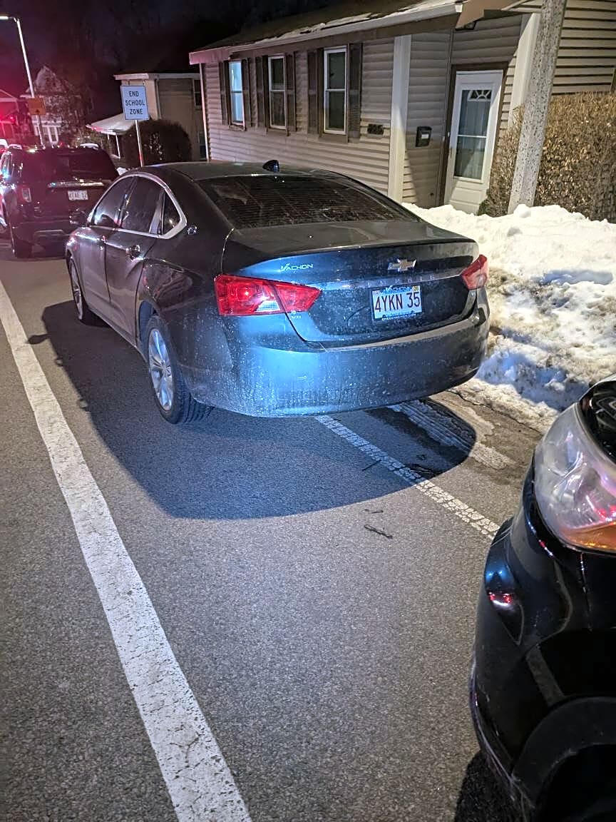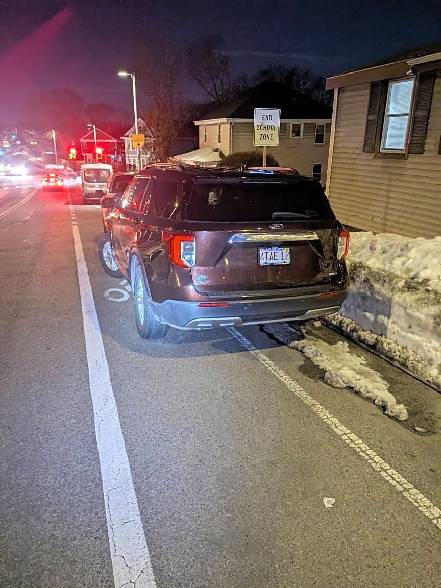 195 Cummins Hwy, Roslindale, Ma, 02131Vehicle parked partially in the bike lane instead of shoveling out the parking space.
