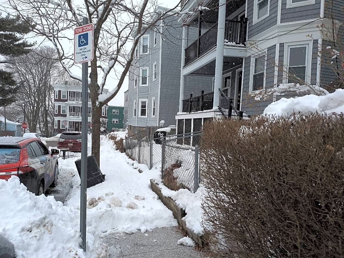 Intersection Of Keith St And Temple St, West Roxbury, MaBlocked crosswalk and no access to building for delivery services