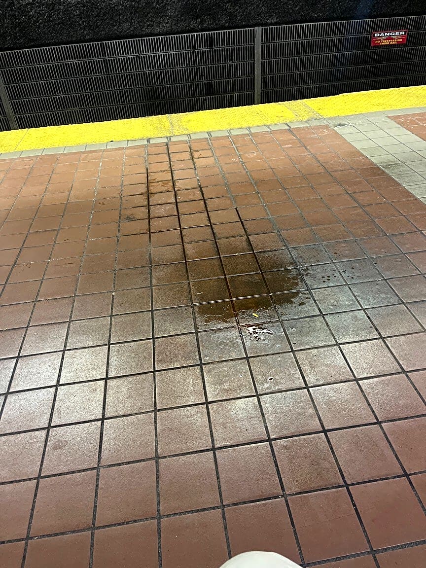leaking ceiling. puddle on floor. red line alewife platform south station