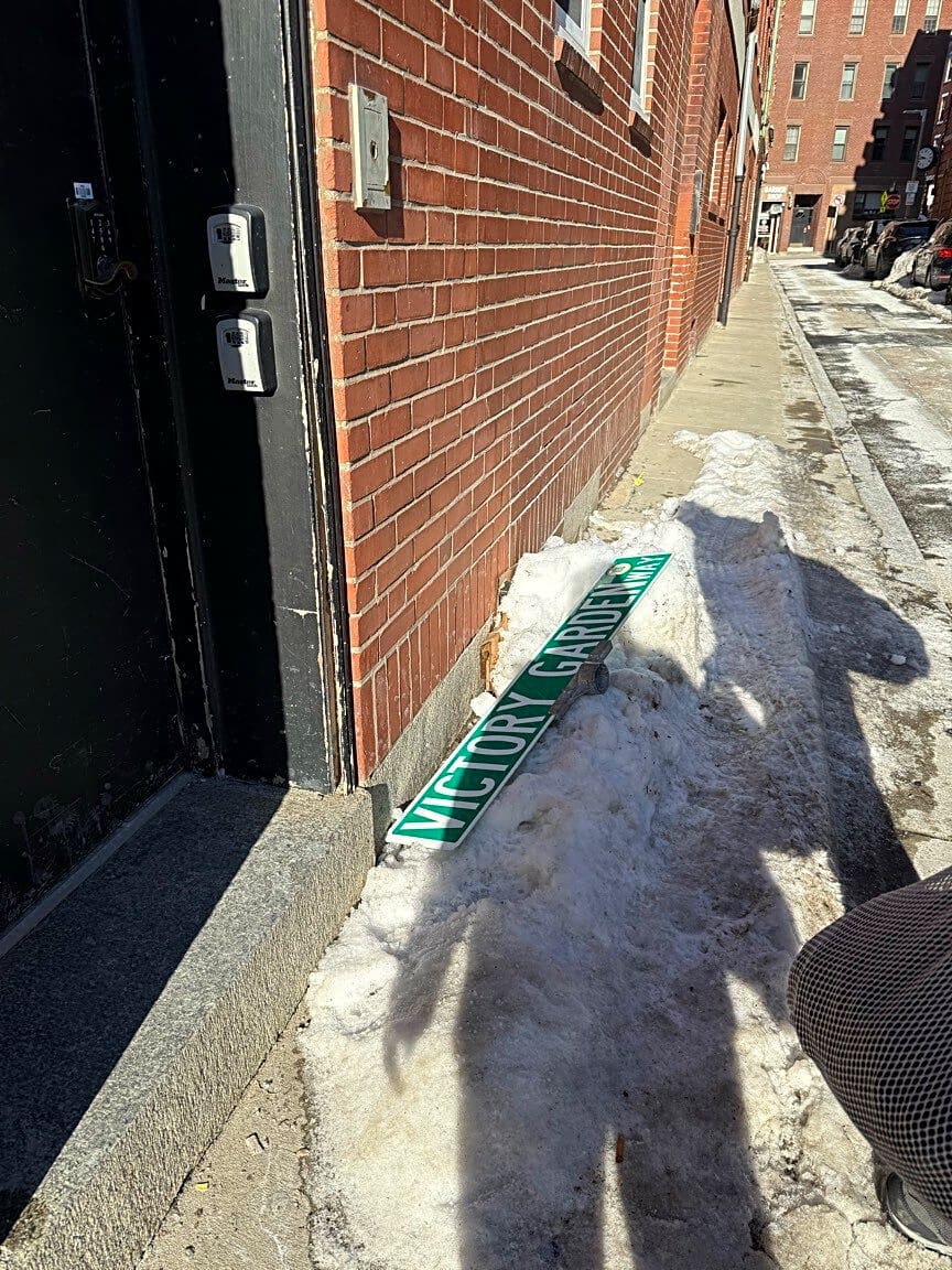 33 N Bennet St, Boston, Ma, 02113Fallen sign and uncleared snow in front of 36 N Bennet st in the North End. Landlords have not cleared the sidewalk after being fined multiple times.
