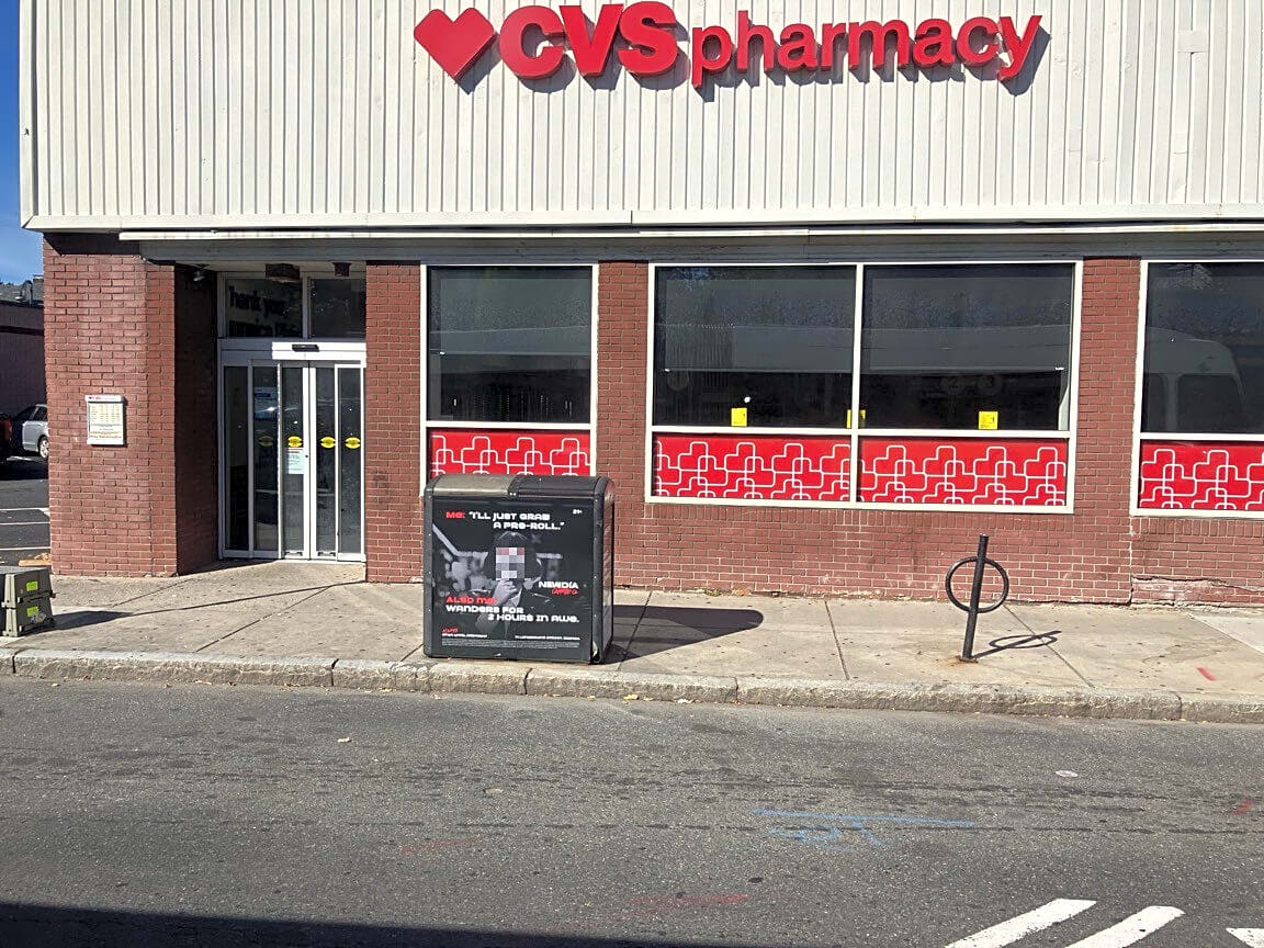 Cannabis ad is on a city owned trash can, right next to a K-8 school, the Curley.