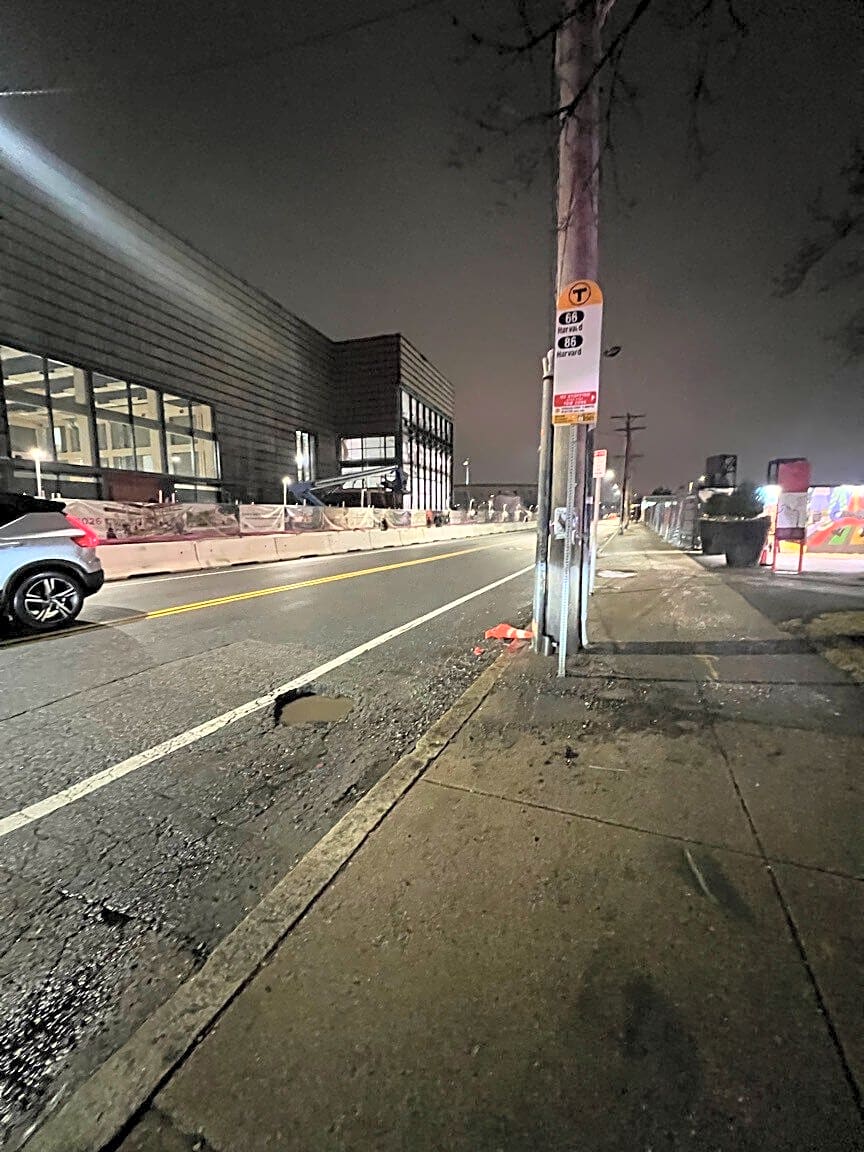 175 N Harvard St, Allston, Ma, 02134Large pothole spanning most of the bike lane. Could be dangerous for scooters because those devices have much smaller wheels