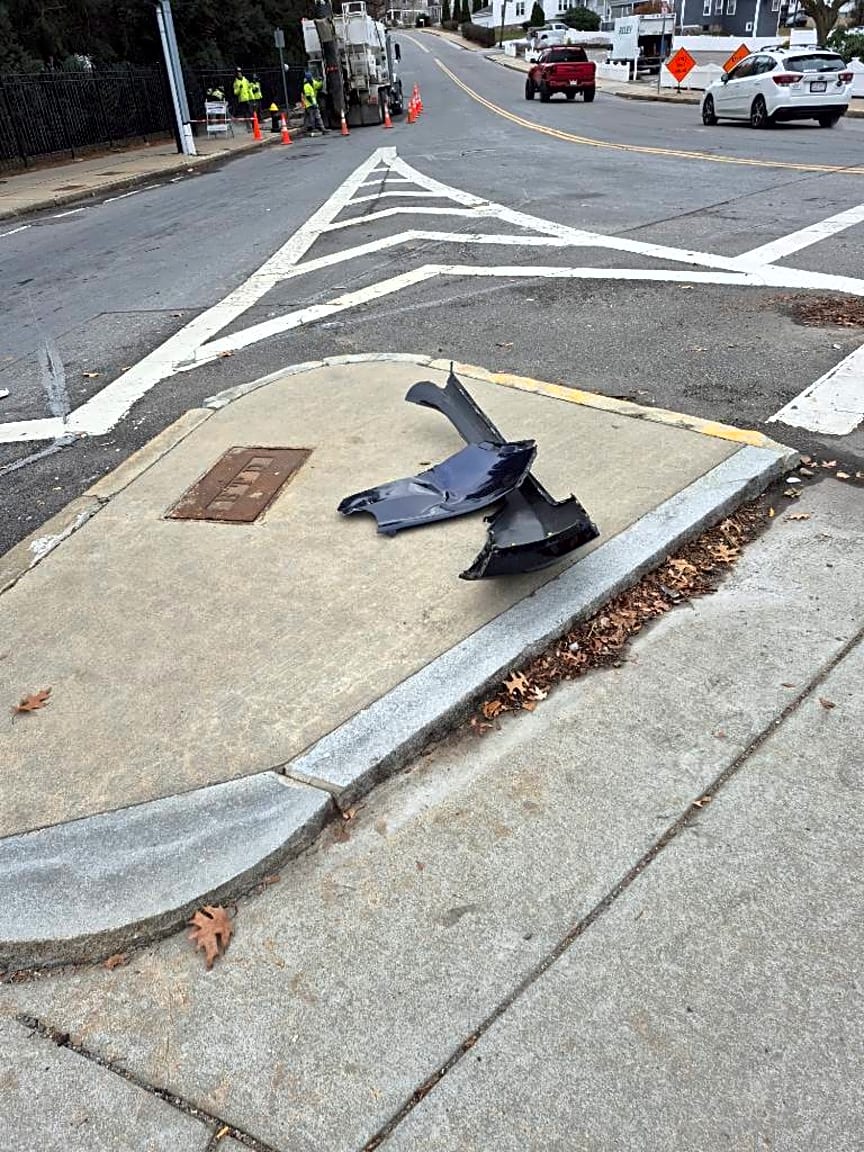 Intersection Of Centre St And Spring St, West Roxbury, MaMVA debris in roadway and on sidewalk