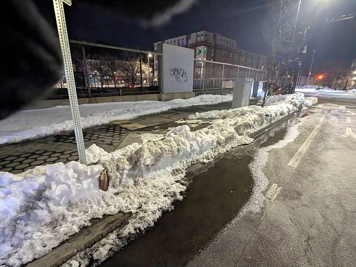 Intersection Of Ukraine Way And Washington St, Roslindale, MaImpossible to bike from the street-level bike lane to the ramp to the sidewalk-level bike lane here.
