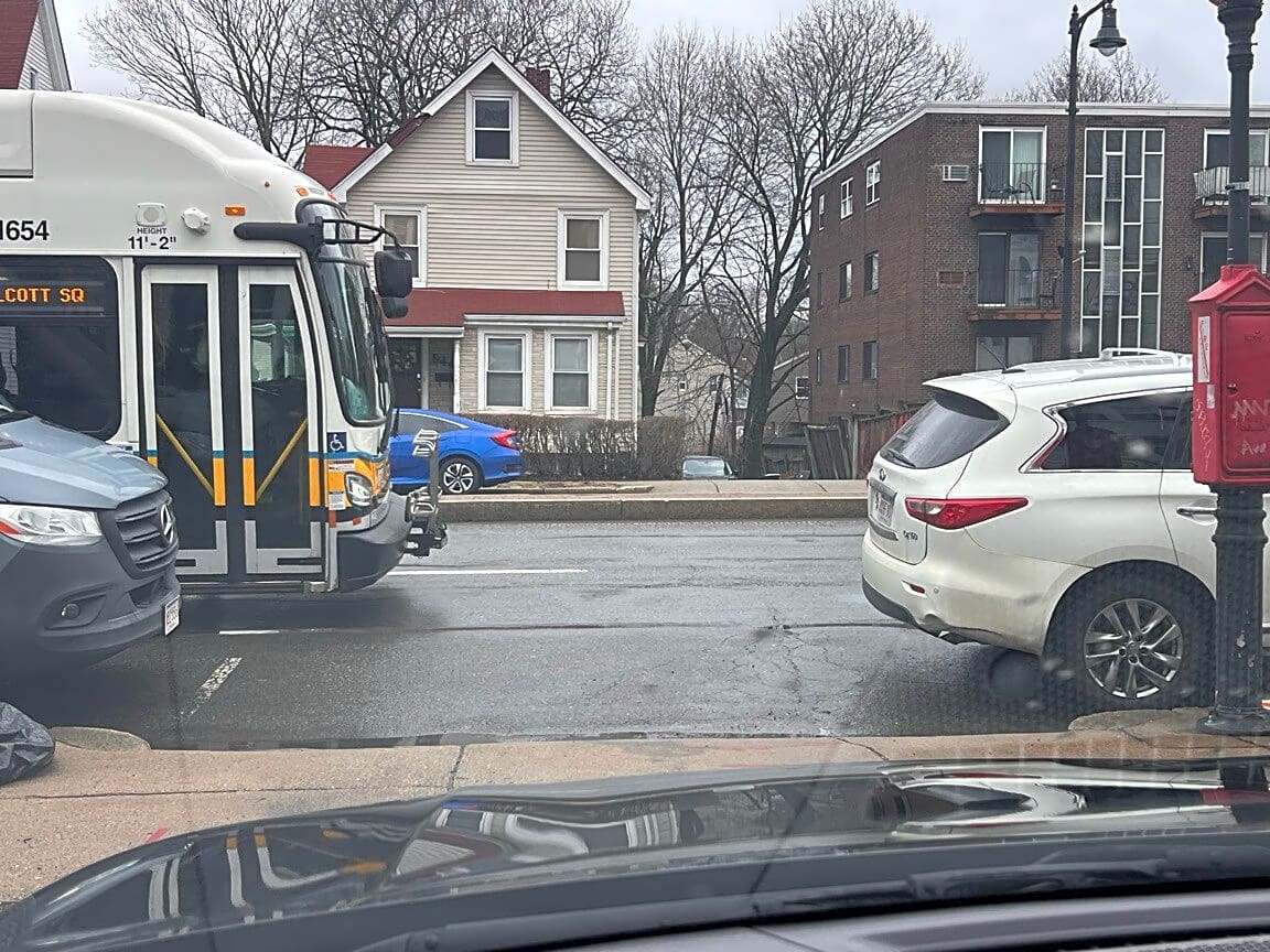 543 Hyde Park Ave, Roslindale, Ma, 02131Car blocking my driveway exit, illegally parked. Exit is too narrow to turn.