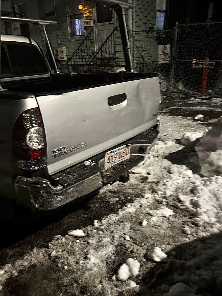 106 Eutaw St, East Boston, Ma, 02128vehicle is blocking the driveway at this location. | How is the car parked illegally: [Other] Type of vehicle: [Truck] Make: [Toyota] Model: [4DR] Color: [GreySilver] Vehicle License Plate Registration: [419n60] Vehicle License Plate State: [MA]