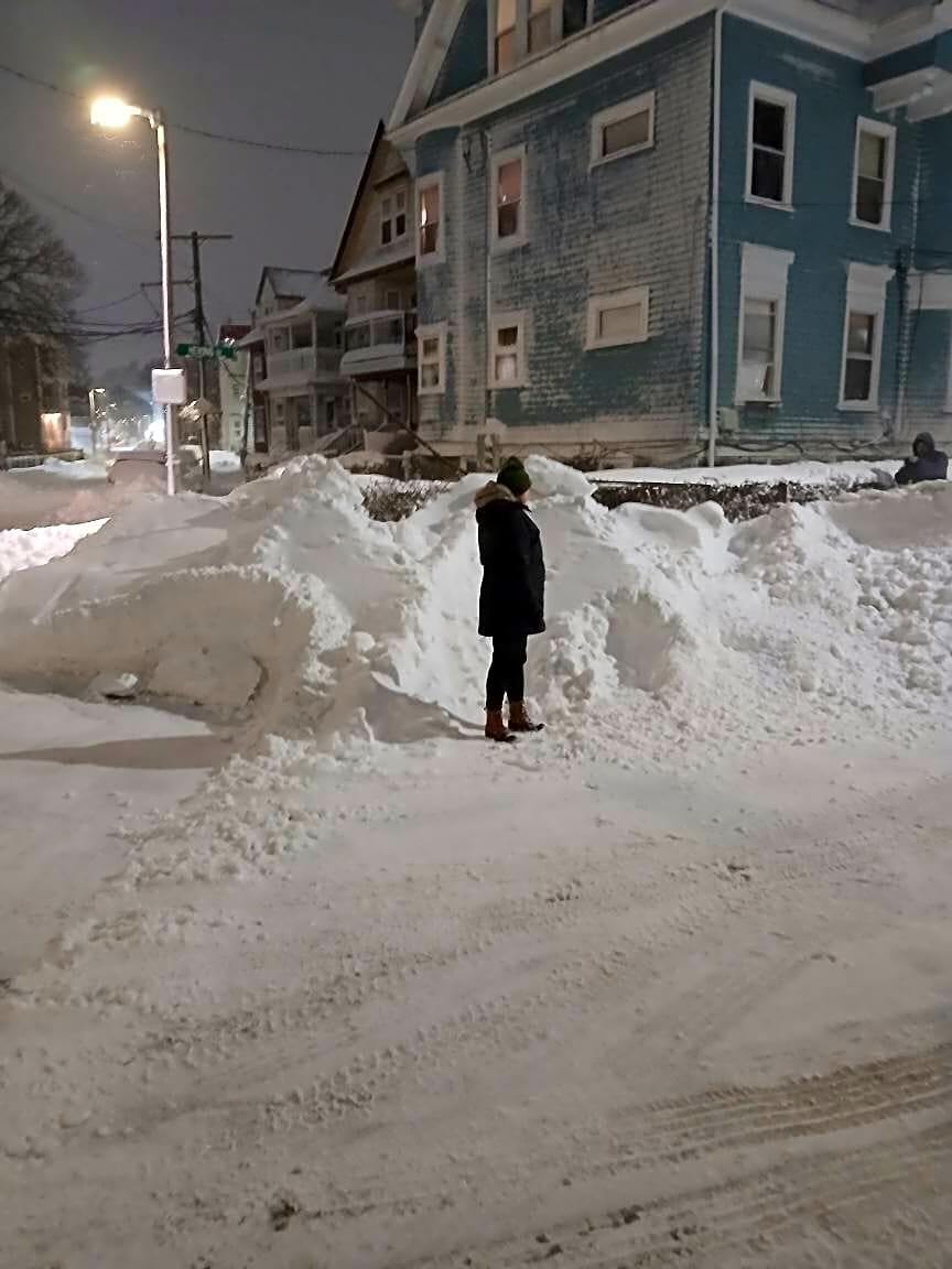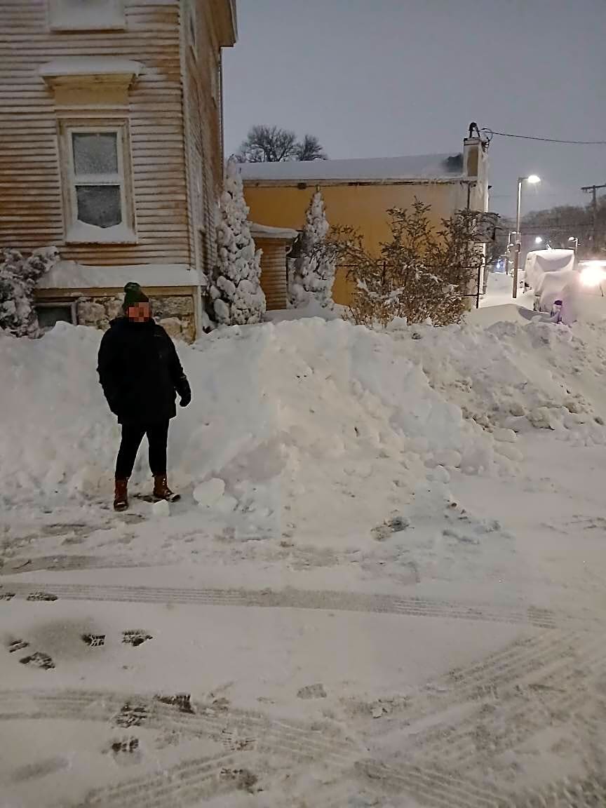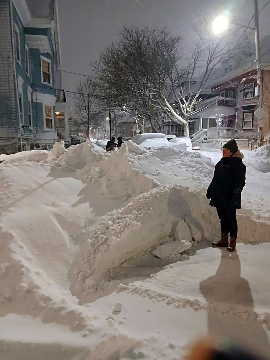 52 Hewins St, Dorchester, Ma, 02121sbow blowed the snow onto our corner sidewalk breaking the fence at 47 Hewins street and 52 Hewins street