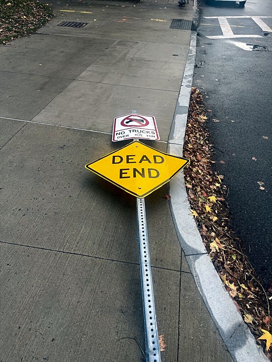 Intersection Of Lewis St And Marginal St, East Boston, MaTraffic sign on the floor!