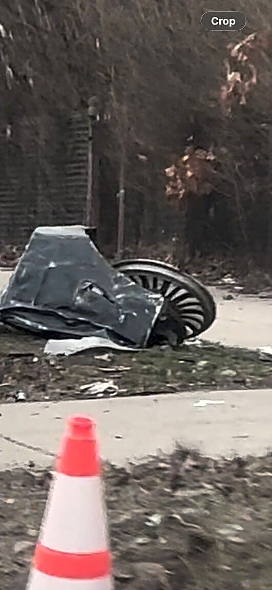 448 Gallivan Blvd, Dorchester, Ma, 02124Landing gear from multiple small craft accident on gallivan Blvd. Actually it is yhe axel and wheel of a car crash that took out two light poles. Still on sidewalk needs to be removed and area cleaned of glass other debris. Thanks.