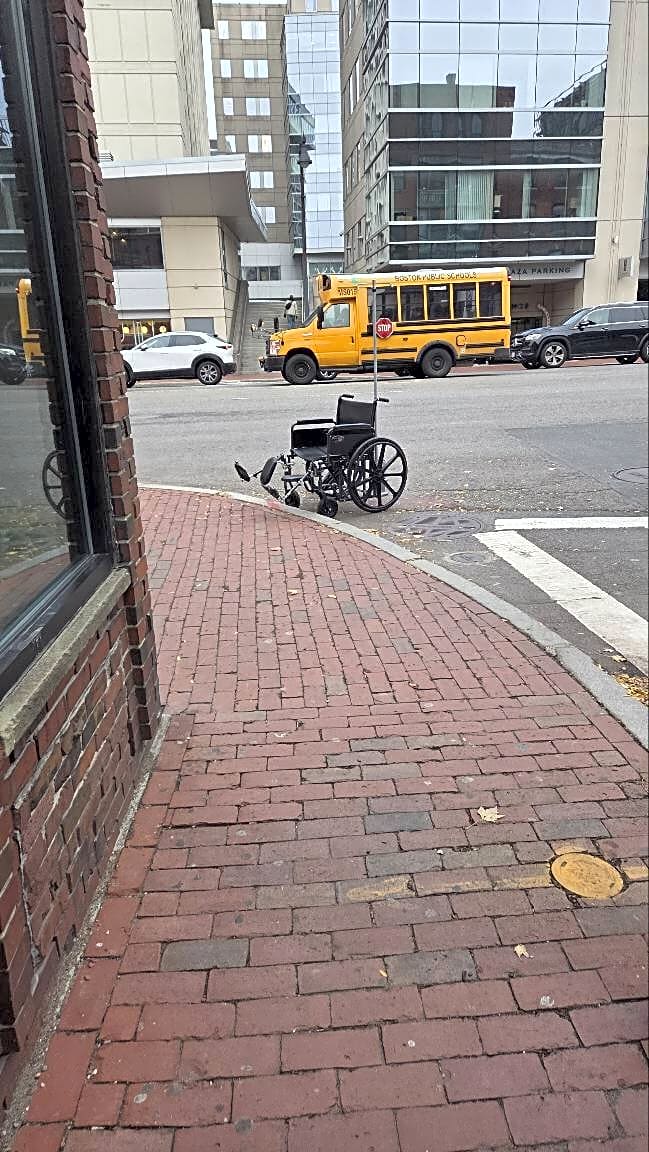 Intersection Of Irving St And Cambridge St, Boston, MaMGH wheelchair left on street