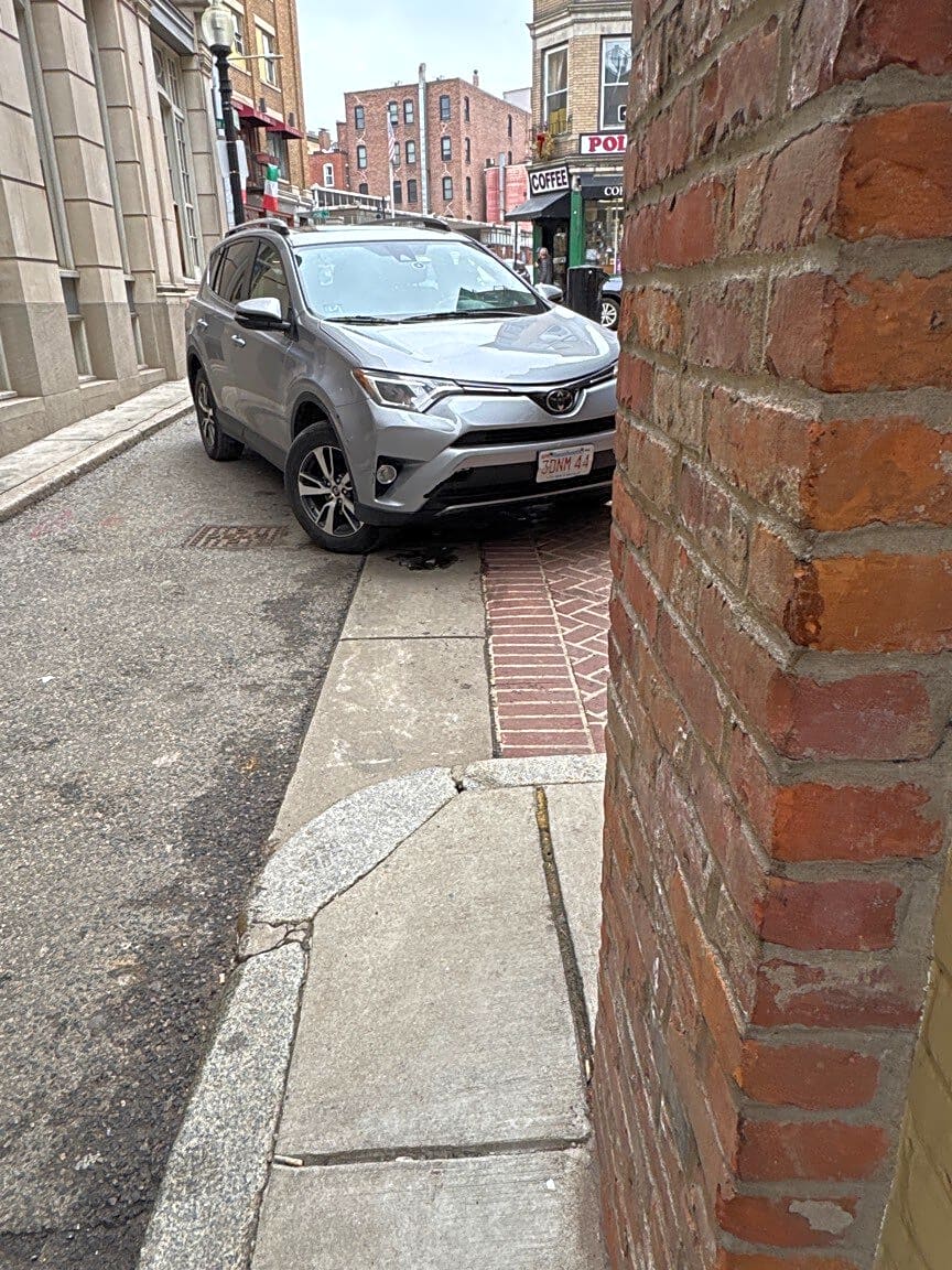 Intersection Of Lewis St And Commercial St, Boston, MaHi 311, I’ve attached a photo of a parking spot in the North End. The spot is at the intersection of Lewis St. and Commercial St. where the intersection forms a “T” shape. At the very top and center of the “T” there is a spot that is in between the cross walks. You can see in the attached image, a black car is parked there. I often see cars parked there but not always as I believe the signs on both sides of the cross walks around the spot lead to confusion as to whether or not it is a legal spot. Can you please confirm for me if a resident car is allowed to park in this spot? Thanks, Chris Santini