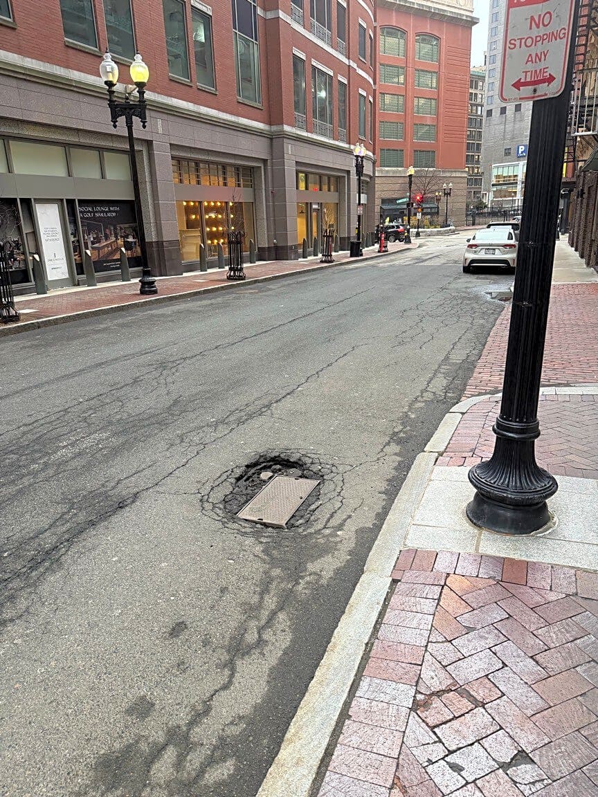 85 Bedford St, Boston, Ma, 02111Pothole forming around edges of utility box