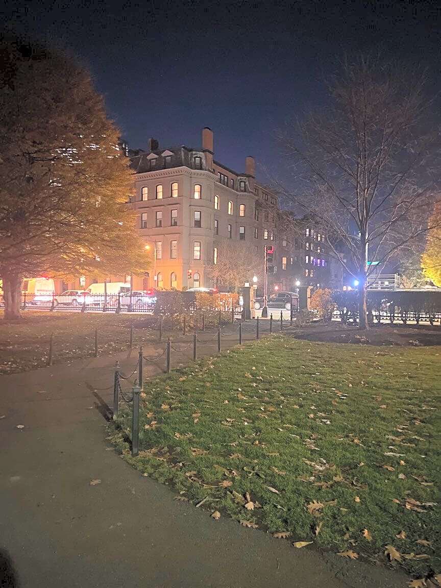 Intersection Of Marlborough St And Arlington St, Boston, MaGlass shattered in walkway public garden entrance by Marlborough