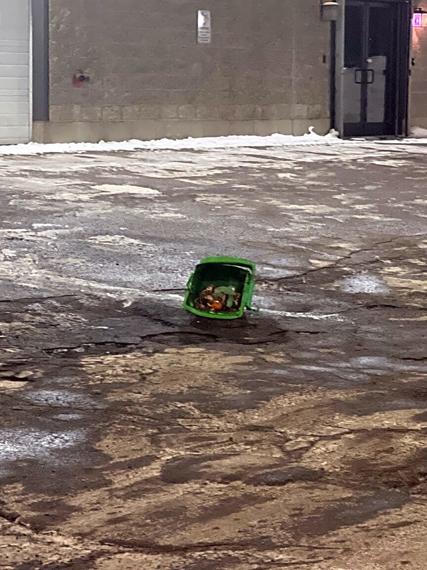 Intersection Of Gibson St And Presley Rd, Dorchester, MaTrash can fell off trash truck