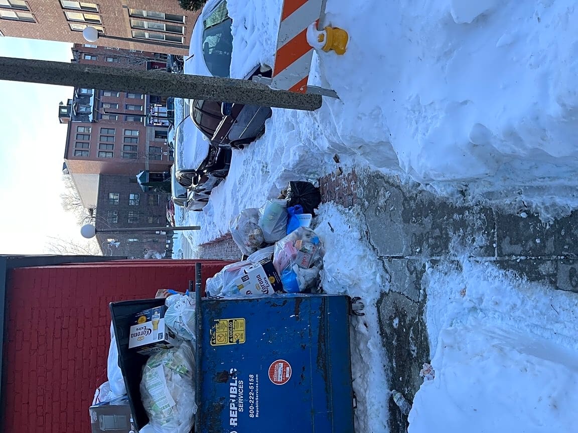 981 A 981 Tremont St, Mission Hill, Ma, 02120Blocked sidewalk with overflowing dumpster behind 981 Tremont st