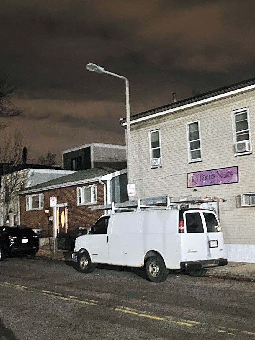 73 75 S Crescent Cirt, Brighton, Ma, 02135Car parked in middle of street in front of driveway on dead end.