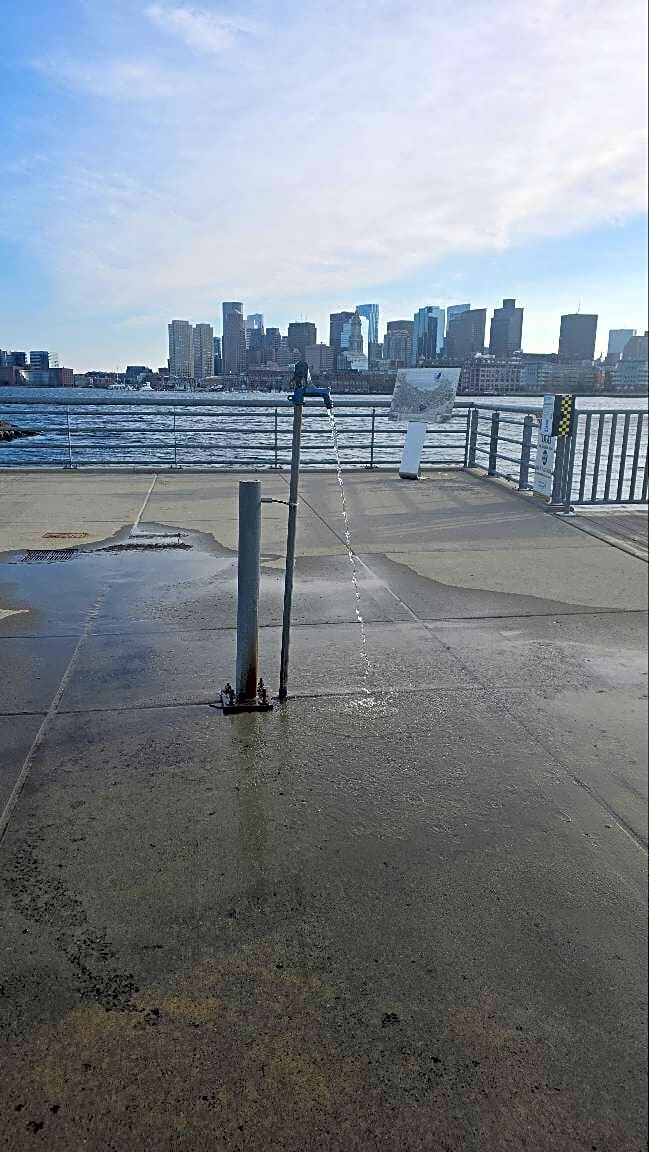 8 New St, East Boston, Ma, 02128Water tap broken/ consistent running from busted valve outside of reelhouse on harbor walk