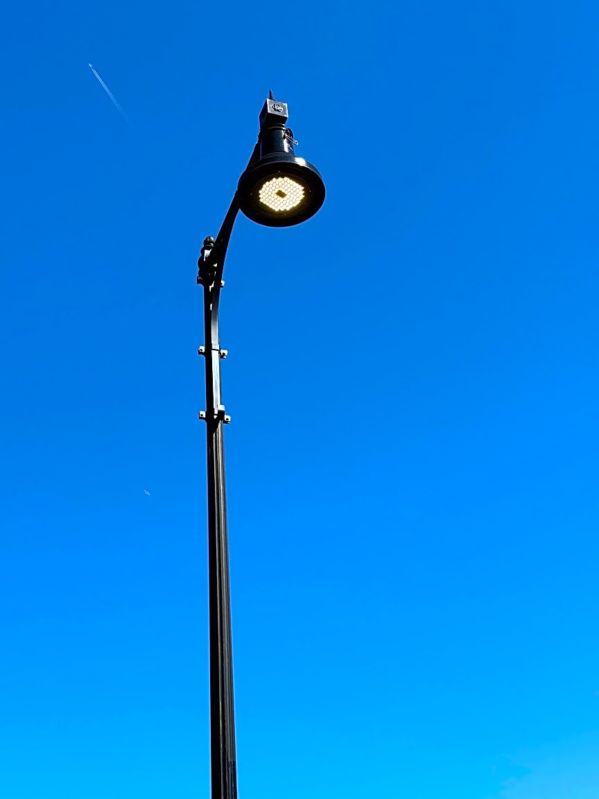 Arlington St & Public Alley No. 438light pole lit during the day 10:15 AM