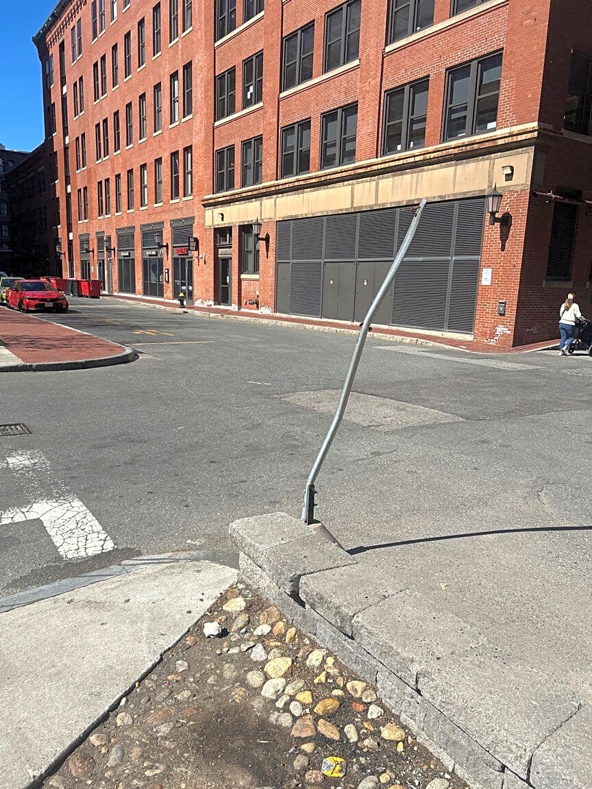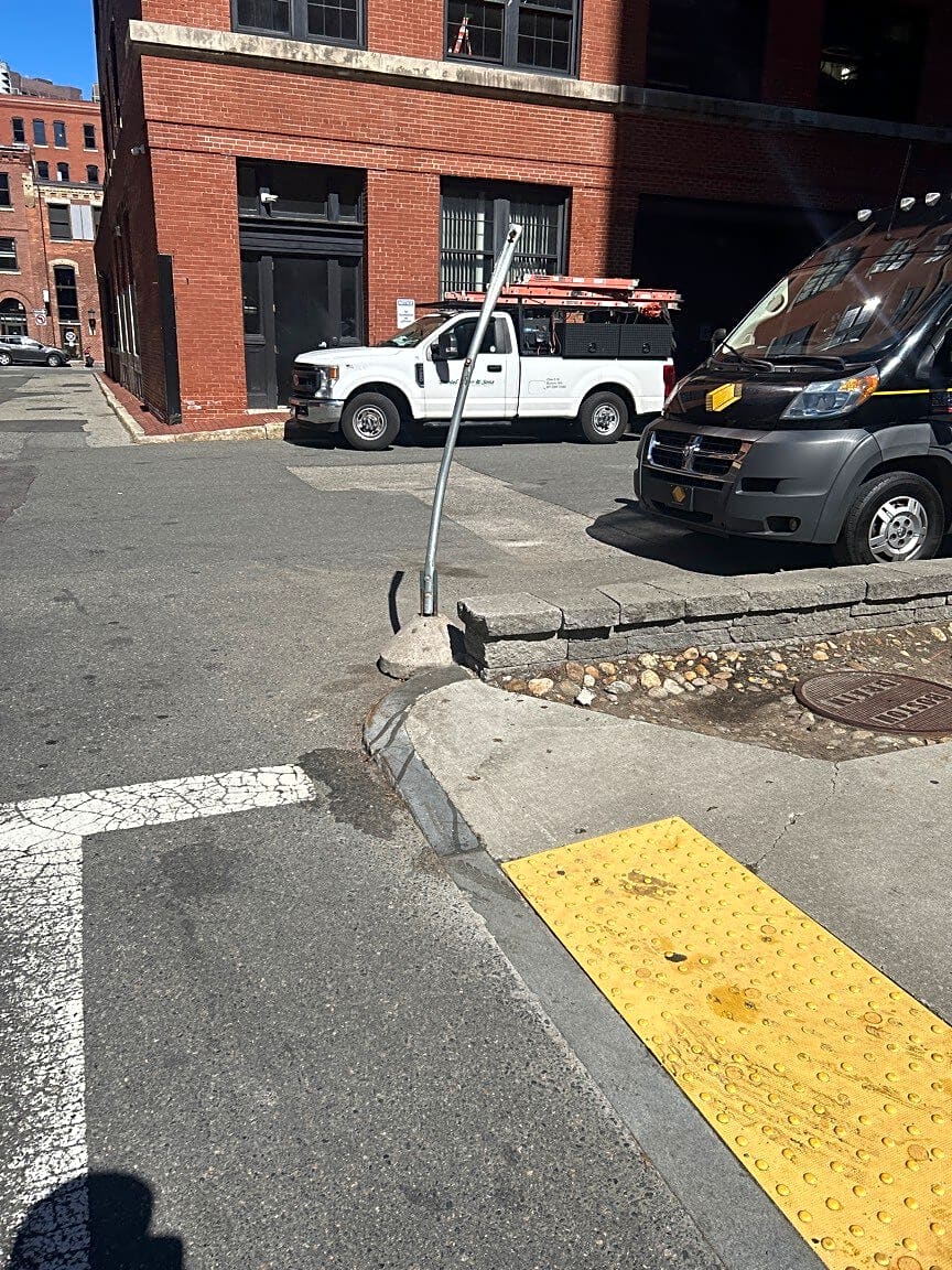 Intersection Of Calvin Pl And Stillings St, Boston, MaMissing stop sign at the corner of Stillings Street and Autumn Lane.