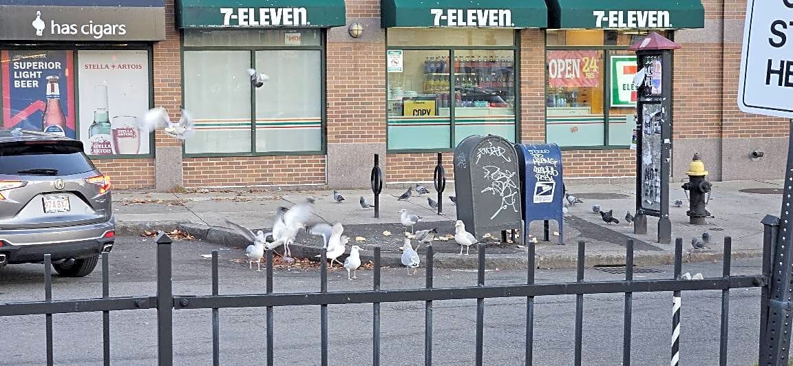Intersection Of Commonwealth Ave And Harvard Ave, Allston, MaLittering. Bagels on the sidewalk