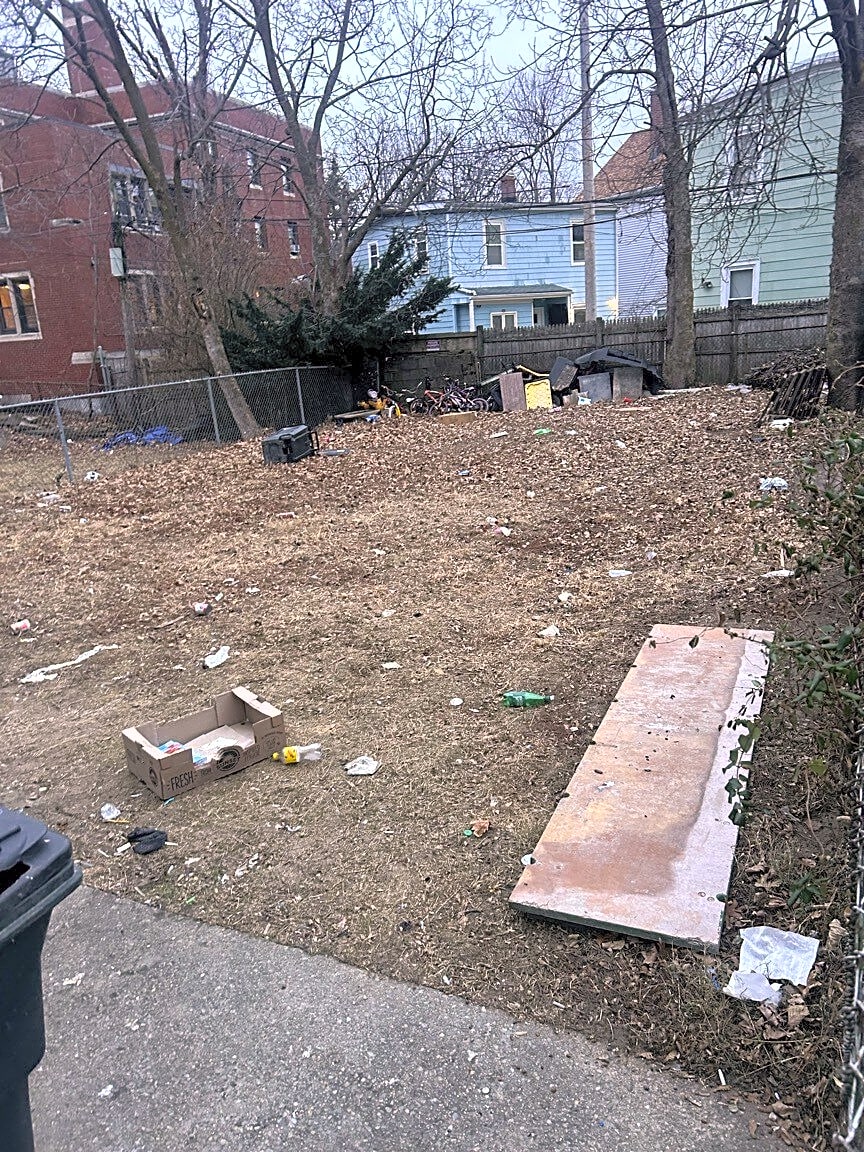 26 Dickens St, Dorchester, Ma, 02122Trash all over neighbors yard for over a week now