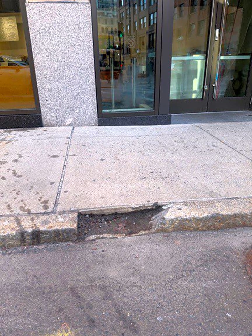 Intersection Of High St And Congress St, Boston, MaBroken/missing curb at intersection of Congress and High Street in front of Better Bagels