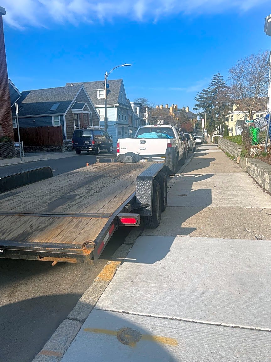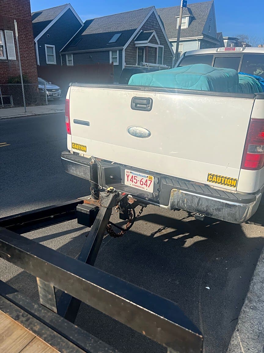 138 Centre St, Dorchester, Ma, 02124Commercial pick up truck parked illegally on residential street for more than 3 hours. Also parked on sidewalk which is illegal. Please ticket this repeat offender.