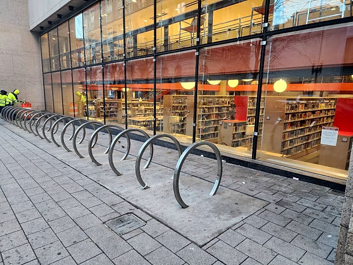 Intersection Of Blagden St And Exeter St, Boston, MaCollection of three in the right corner of the second row of bike racks on the Exeter side of the BPL