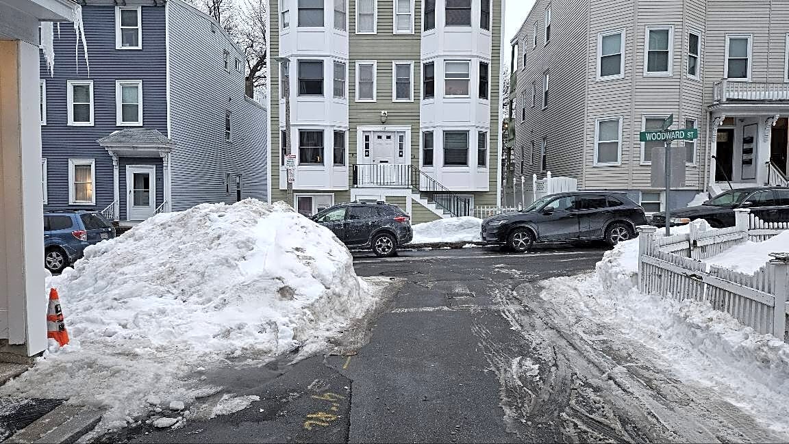 Intersection Of Glover Ct And Woodward St, South Boston, MaCity plowed snow and completely covered corner sidewalk and is very dangerous