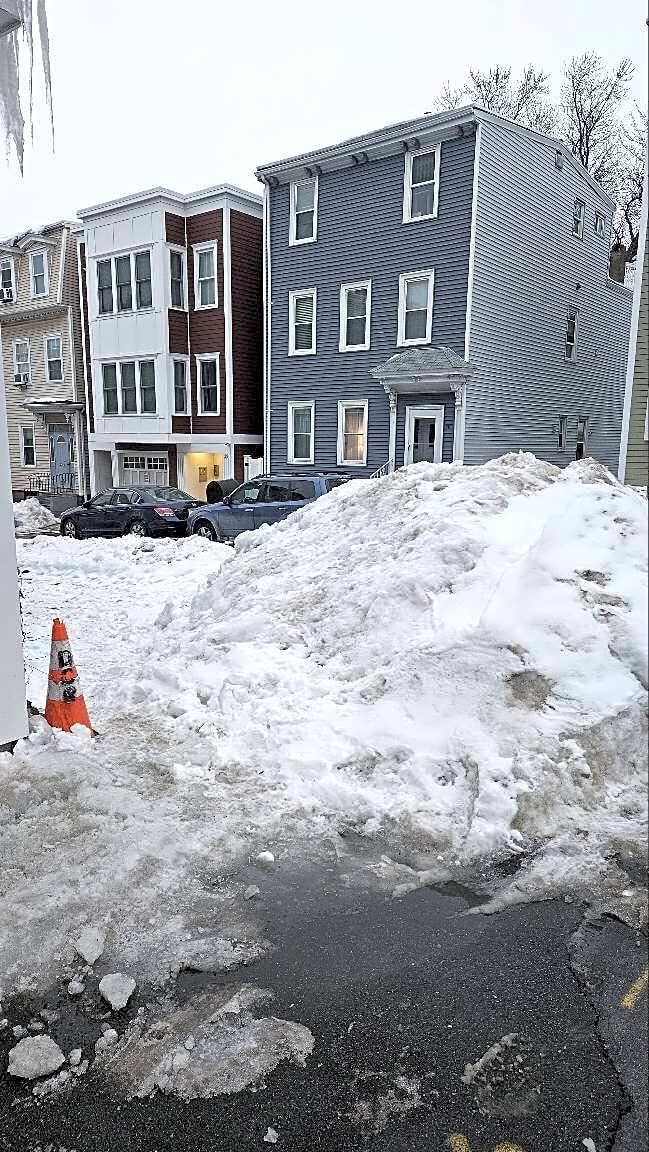 332 Tremont St, Boston, Ma, 02116The snow piles are blocking the parking spots in front of the daycare center and public school zone. It’s a safety hazard for small children during drop off